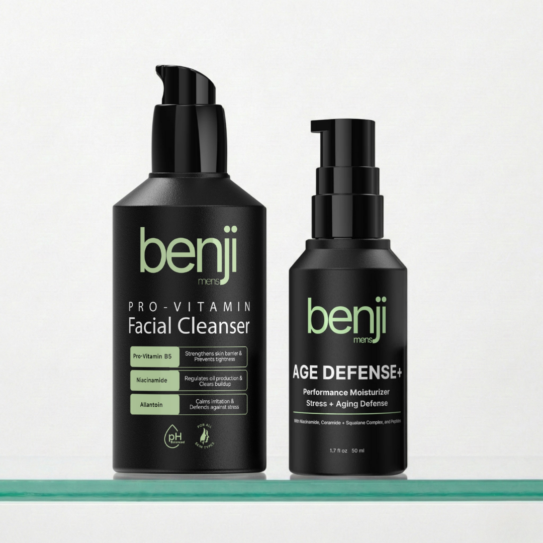 Benji’s proprietary blend system of clinically aligned actives designed to defend skin against stress-accelerated aging.