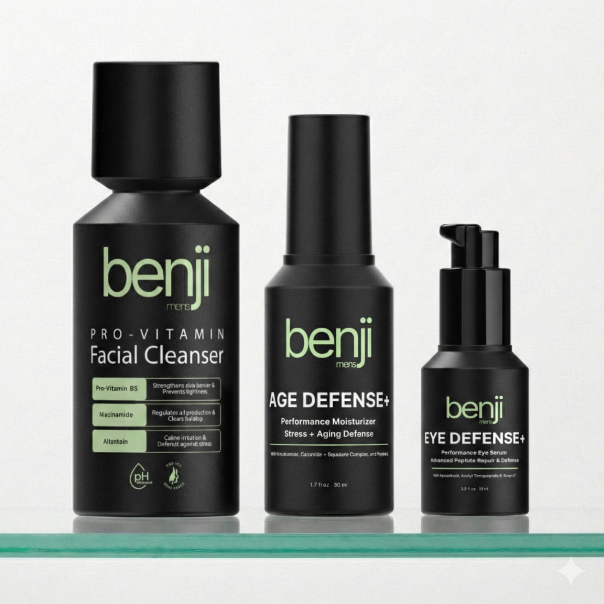 Benji’s proprietary blend system of clinically aligned actives designed to defend skin against stress-accelerated aging.